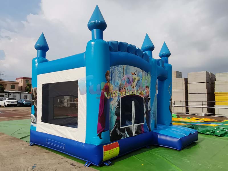 The anime cartoon themed bouncy castle provides children with an immersive experience, combining fun with physical activity to create a magical world of ice and snow.