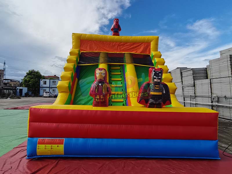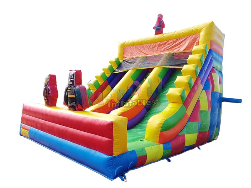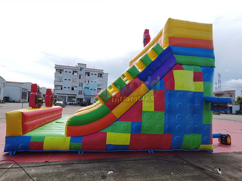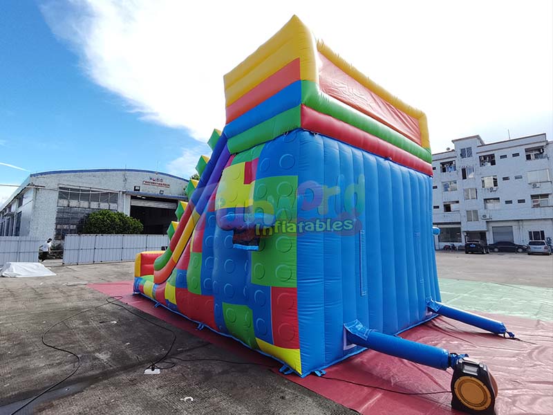 This best blow up inflatable slide, inspired by vibrant red, blue, green, and yellow building blocks, creates a playful world, inviting children to slide into a kingdom of fun!