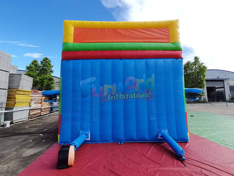 This inflatable slip and slide for adults features a vibrant brick pattern on the sides, accented with red, blue, green, and yellow, creating a captivating visual experience. The well inflated and durable side structure features smooth curves and a unique brick texture. The vibrant colors not only capture children's attention but also ensure stability during use, providing a safe and enjoyable sliding experience.