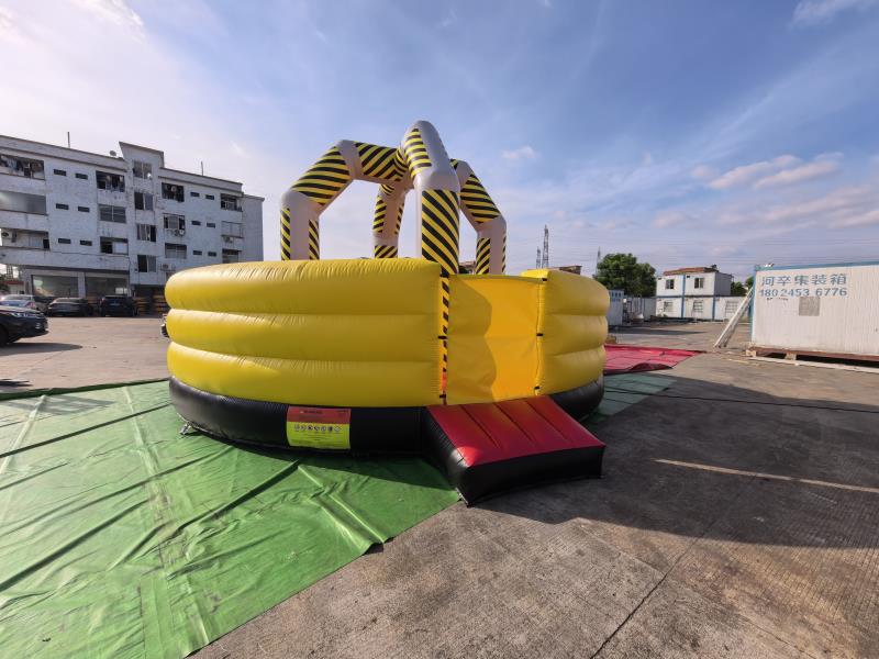 Interactive games wrecking ball. The red reinforced strips utilize a thickened, integrated inflatable structure, creating a dense anti-slip pattern on the ground while also strengthening the ground's load-bearing capacity and tear resistance. This design provides a soft, cushioned feel when stepped on, and the reinforced strips prevent excessive sagging of the surface, ensuring durability and resistance to deformation even with long-term use.