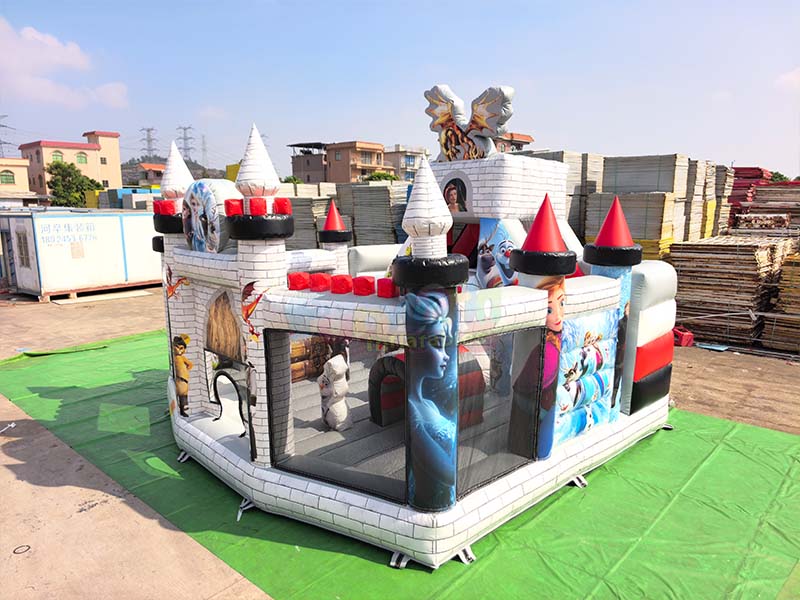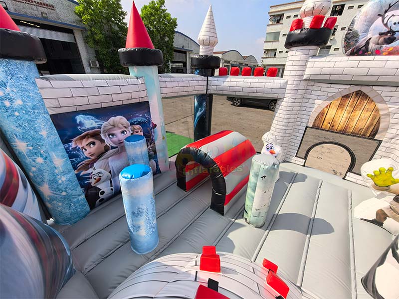 Our team boasts exceptional design prowess.Through ingenious color palettes that mirror the frosty blues and purples of Arendelle, and structural designs that mimic the grandeur of its castles and snow capped peaks, we've birthed a range of products that are both distinct and thematically cohesive.This showcases not only our knack for in depth thematic development but also our team's profound expertise in multi theme design. With sharp market insights and a treasure trove of creative ideas, we're adept at distilling the essence of any theme, be it a beloved animated IP, fairy tale figures, or fantastical concepts. Using our unique design vernacular and innovative techniques, we transform these themes into captivating inflatable bounce houses that cater to the varied tastes of our customers, solidifying our status as trend setters in the inflatable amusement facility design realm.