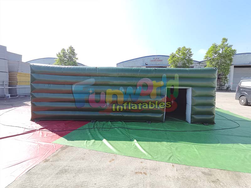 Inflatable Laser Tag Maze Tent structure constructed from durable, puncture-resistant commercial-grade PVC tarpaulin materials, ensuring longevity for rentals or intense, repeated use. Features an immersive design, inside the tent offers a darkened, maze-like layout filled with inflatable walls, barriers, and pillars that serve as hiding spots, creating a mysterious and engaging atmosphere for players.