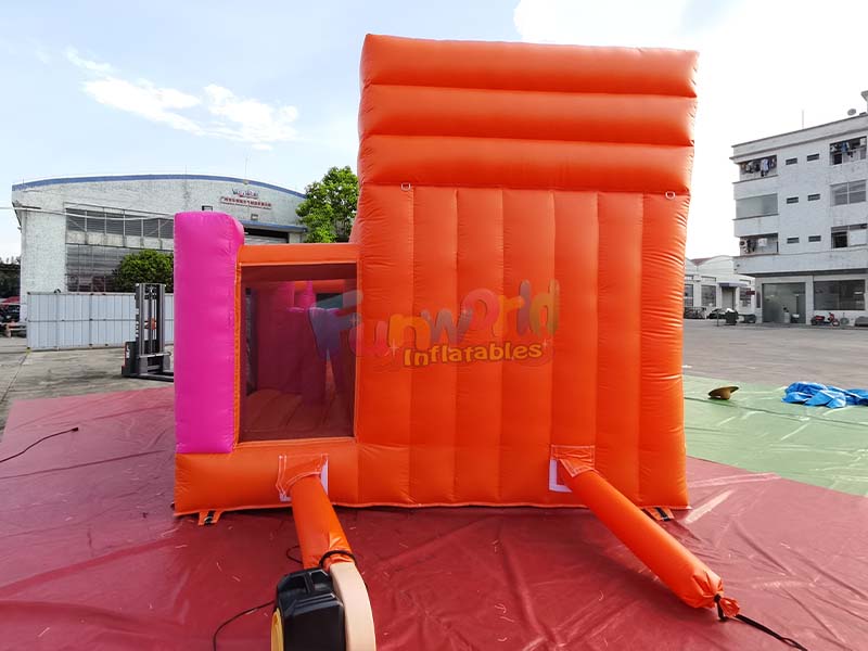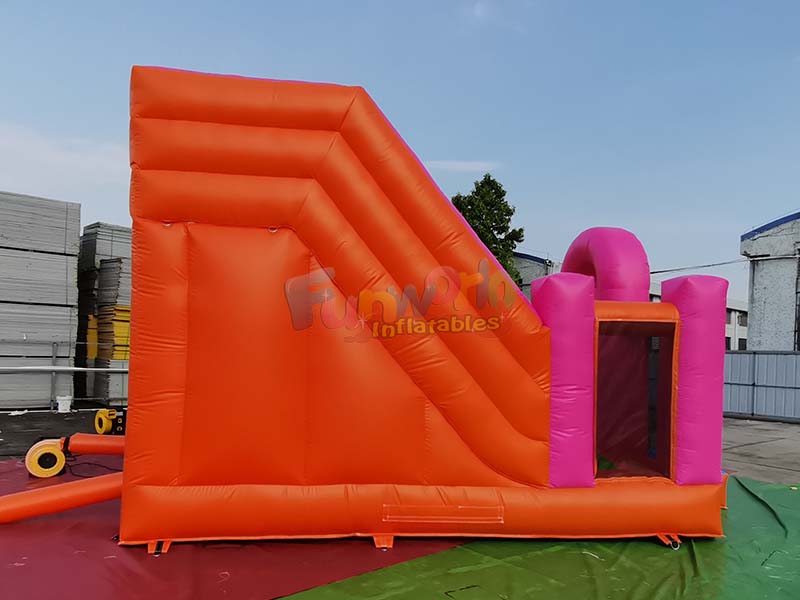 Wet dry inflatable slide has a smooth and delicate surface texture, which not only ensures the smoothness of sliding, but also uses the characteristics of the material to buffer the sliding speed and improve the safety of play. The inflatable side wall is thick and inflated evenly, with rounded and upright lines, providing a solid protection as a whole.