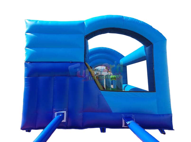 All games include a back flow flap to slowdown the escape of air from a game, when the air blower stop working, the game is not easy to collapse at once and the people can have enough time to go outside.