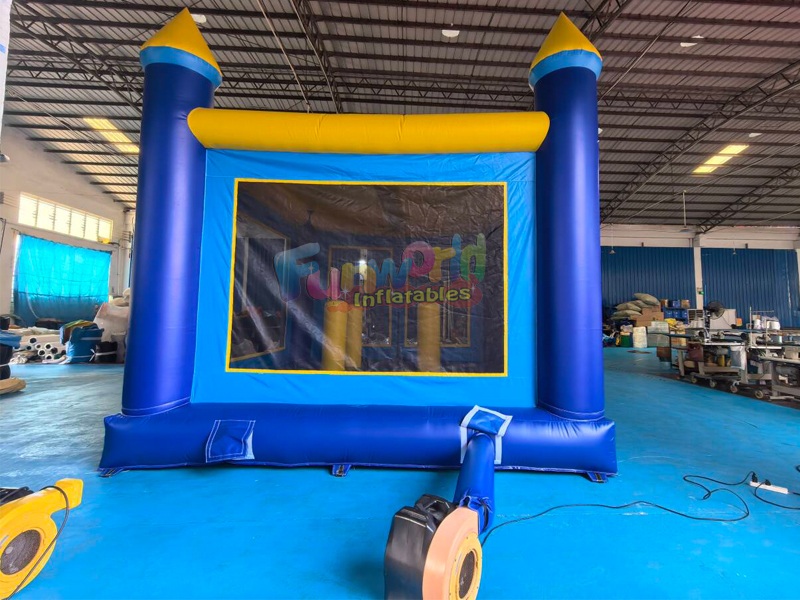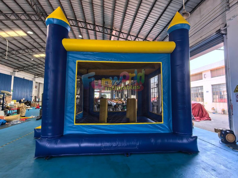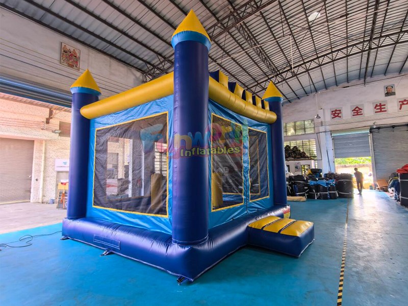 The blue dream inflatable castle bounce house is an enchanting, vibrant inflatable play structure designed to be the centerpiece of any party or event. Featuring a classic royal aesthetic, it combines eye-catching blue and yellow colors with majestic castle spires at each corner to attract children of all ages.