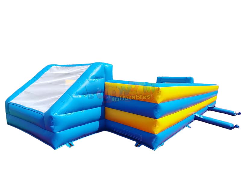 This Outdoor inflatable soap soccer field transforms any playground into a sports enthusiast's paradise. Its vibrant blue and yellow areas create a fun-filled arena. Players can glide, compete in soap football games, run around the field, and perform a variety of fun maneuvers for a fun, immersive sports adventure.
