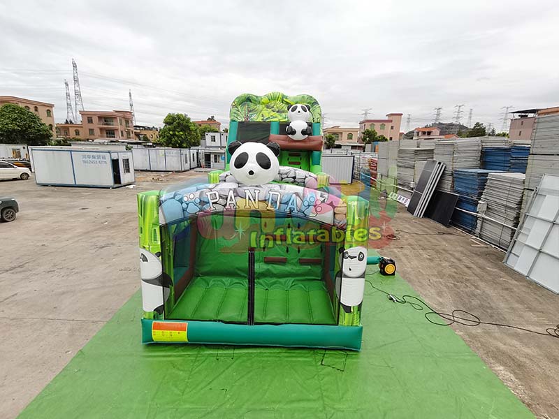 Panda inflatable slide, including slides and bounce areas, provides a safe and fun space for physical activities for children of appropriate ages.